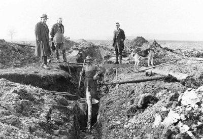 Drainageanlage auf dem Staatsgut in Osterseeon (bei Kirchseeon, Oby.), Personen: Landwirtschaftsrat Kiendl, Gutsverwalter Lochner, Fotografie: 25.3.1926.