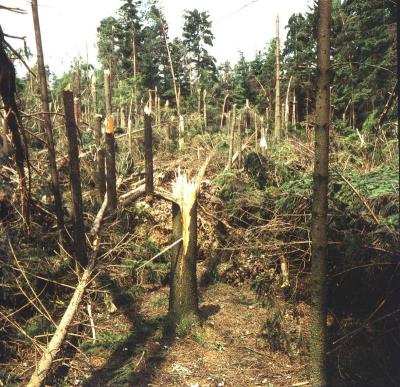 Sturmschäden in einem Wald bei Hohenwart, Großdia: 17.7.1958.
