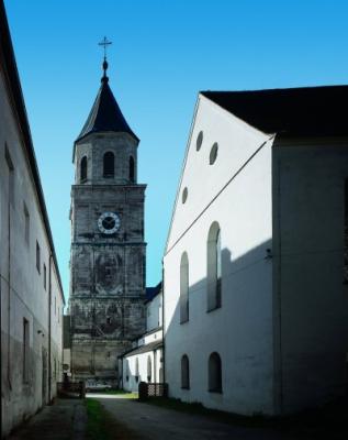 Ehem. Augustiner-Chorherrenstift Polling, Kirchturm, unterer Teil 1605 v. Hans Krumpper; achteckiger Aufsatz v. 1821.