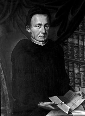 Bildnis des Historikers und Benediktinermönchs Karl Meichelbeck (1669-1734) mit einer Archivalie, Ölgemälde, um 1750, Benediktbeuern, ehem. Benediktinerkloster (Pfarrkirchenstiftung St.Benedikt)