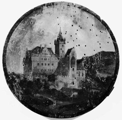 Ansicht von Schloss Egg in Bernried (erbaut im 13./14. Jh., Umgestaltung 1838-1842), Schützenscheibe, 18758, Deggendorf, K.P. Feuerschützengesellschaft.