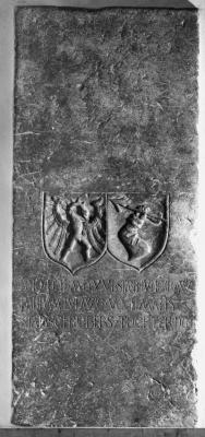 Grabplatte der Barbara, Tochter des Stadtschreibers Ludwig Vogelmann, Steinrelief, 1516, Memmingen, ehem. Antoniterklosterkirche