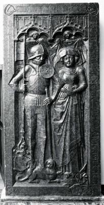 Epitaph des Heinrich Nothaft (gest. 1471) und seiner Frau Margaretha (gest. 1446), Steinrelief/Rotmarmor, um 1476, Straubing, Karmeliten-Klosterkirche Hl. Geist, Mönchschor.