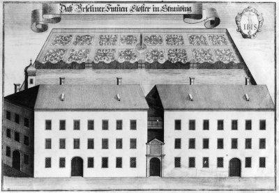 Wening, M., Ansicht des Ursulinenklosters Straubing, Kupferstich, 1726, in: Hist.Topogr., um 1730, Straubing, Ursulinenkloster.