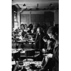 Arbeiterinnen der Münchner Firma Rex-Motorenwerke bei der Verarbeitung von Fertigteilen, Fotografie, Februar 1949.
