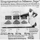 Düngungsversuch zu Erdbeeren der Sorte 'Sieger' der Lommatzscher Gemüse- und Obstverwertung G.m.b.H. in Weinböhla in Sachsen. Großdia: um 1926.