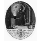 Bildnis des Mönchs und Alchimisten Berthold Schwarz (14. Jh.), dem abendländischen Erfinder des Schwarzpulvers, Schützenscheibe, 19. Jh. (1846?), Fürth, K.P. Schützengesellschaft.