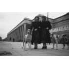 Die Geschwister Margit und Hedi Hoepfner mit Doggen vor dem Haus der Kunst in München, Fotografie: Oktober 1948.