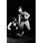 Reisekabarett 'Die Hinterbliebenen' in der Kleinen Komödie am Maxmonument. Hier Claire Winter als 'Hans im Glück' und Hans Bemuth als 'Hitler' in einer Hitler-Persiflage, Fotografie: 15.3.1946.