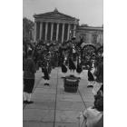 Schäfflertanz auf dem Königsplatz anlässlich des 75. Jahrestages der Gründung des Fachvereins der Schäffler in München, Fotografie: 6.7.1946.