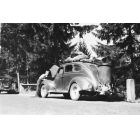 Panne eines Automobils mit Holzvergasermotor auf einer Landstraße, Fotografie, August 1946.