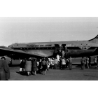 Passagiere besteigen ein Flugzeug der 'Transocean Air Lines' auf dem Flughafen München Riem, Fotografie, Mai 1948.