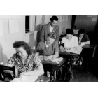 Schneiderei in der O.R.T.-Schule im DP-Lager in Feldafing (u.a. Schneiderei, Druckerei), Fotografie: 19.5.1948.