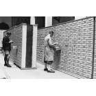 Wohnungsnot: Türe mit mehreren Namensschildern (in München?), Fotografie: November 1946.
