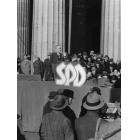 Dr. Kurt Schumacher als Hauptredner der Wahlkundgebung der SPD auf dem Münchner Königsplatz, Fotografie: 24.11.1946.