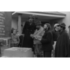 Ergebnis der Schauspielerauswahl zu den Passionsspielen 1950 vor dem Oberammergauer Rathaus, Fotografie: November 1949.