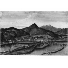 Ansicht von Berchtesgaden und dem Franziskanerkloster (links), Tuschezeichnung, um 1800, Berchtesgaden, Heimatmuseum.