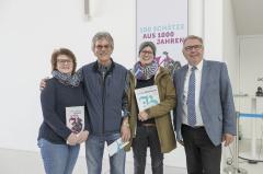 Am Donnerstagvormittag, den 7.11.2019 konnte in der Bayerischen Landesausstellung in Regensburg der 50.000ste Besucher begrüßt werden, in diesem Fall eine ganze Familie: (v.l.n.r.): Rosi und Franz Brenner aus Ergoldsbach mit Tochter Jutta, Lehrerin in Würzburg, wurden von Projektleiter Dr. Rainhard Riepertinger im Eingangsbereich der Landesausstellung begrüßt.