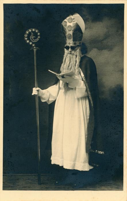 Aus den vorweihnachtlichen Festen ist der Hl. Nikolaus auch im Bayerischen Wald schon lange nicht mehr wegzudenken. Am 6. Dezember oder in der Nacht davor beschenkt er die Kinder. Oder er bestraft sie durch seine schaurigen Gefährten wie den Krampus. Der Nikolaus auf dieser Ansichtskarte vom Vilshofener Fotoatelier Sickel aus dem Jahr 1948 trägt jedoch mit der dunklen Sonnenbrille ein besonderes Accessoire. Ob es sich um einen besonders coolen Niklo handelt oder der Darsteller schlichtweg nicht erkannt werden möchte?