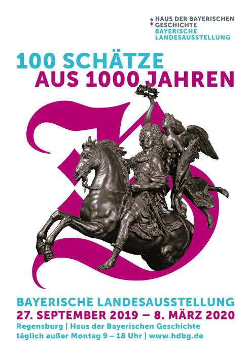 Das Haus der Bayerischen Geschichte veranstaltet vom 27. September 2019 bis zum 08. März 2020 die Bayerische Landesausstellung „100 Schätze aus 1000 Jahren“. Ort ist der Sonderausstellungsbereich des neuen Museums der Bayerischen Geschichte in Regensburg. Die Dauerausstellung des neuen Museums erzählt bayerische Geschichte in neun Generationen von 1800 bis in die Gegenwart, wie Bayern Freistaat wurde und was ihn so besonders macht.
