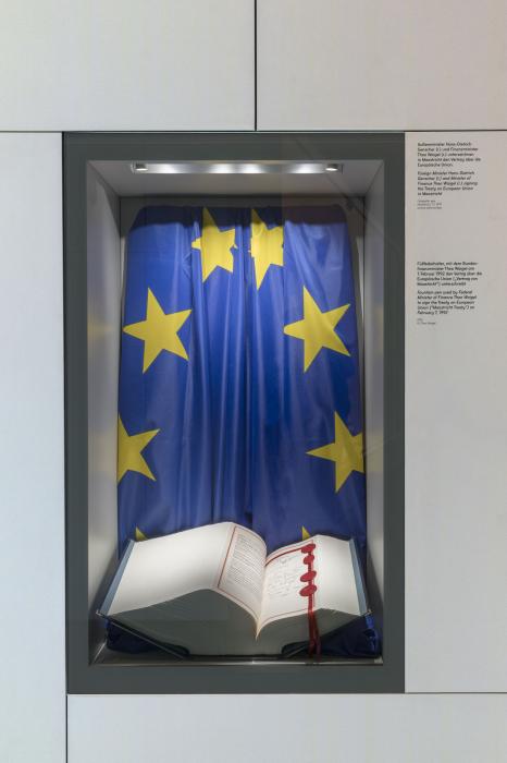 Am 7. Februar 1992 unterschreibt der damalige Bundesfinanzminister Dr. Theo Waigel den Vertrag von Maastricht. Die Europäische Union ist begründet. Der Vertrag von Maastricht regelte das politische und wirtschaftliche Zusammenwachsen der damals 12 Mitgliedsstaaten, legte den Weg zur Währungs- und Wirtschaftsunion fest und damit den Grundstein für den Euro. Zu sehen ist im Museum der Füllfederhalter, den Dr. Theo Waigel in Erinnerung an das bedeutende Ereignis bis heute in Ehren hält und im Mai 2019 an das Haus der Bayerischen Geschichte übergab.