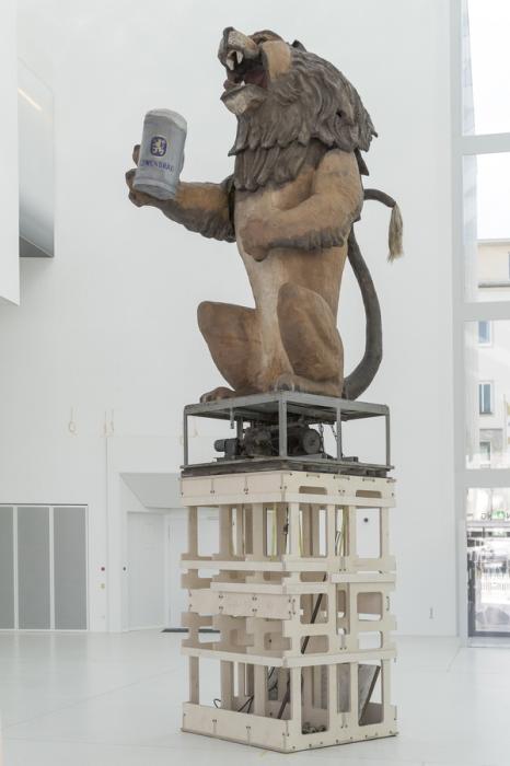 Der 4,19 Meter große bayerische Löwe, seit den 1960er-Jahren angestellt als Sympathieträger bei der Brauerei Löwenbräu, jetzt in den wohl verdienten Ruhestand geschickt. Restauratoren haben ihn nun einer Kur unterzogen, Staub abgewischt, an manchen Stellen geflickt und neu aufpoliert. Einbringung und Aufbau in Regensburg waren aufwändig, jetzt aber sitzt er stolz an seinem neuen Platz.