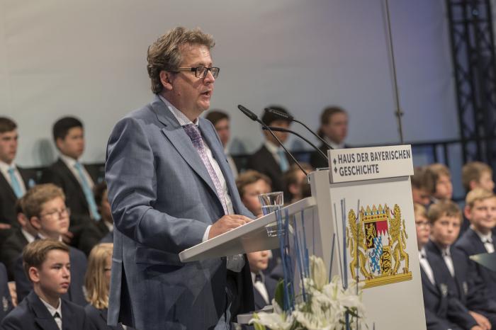 Fast 40 Bühnen und acht Kulturkabinette haben wir für Sie gebaut. Tausend Exponate stellen wir aus, über die Hälfte aus unseren eigenen Sammlungen. Das Haus der Bayerischen Geschichte ist heute ein richtiges Museum, das nicht nur vermittelt, sondern auch sammelt. Das ist, als gelernter Museumsmann, mein größter Stolz. Ich freue mich mit meinen Lehrmeistern und Chefs, Egon Greipl und Peter Wanscher habe ich schon gesehen, darauf anzustoßen.