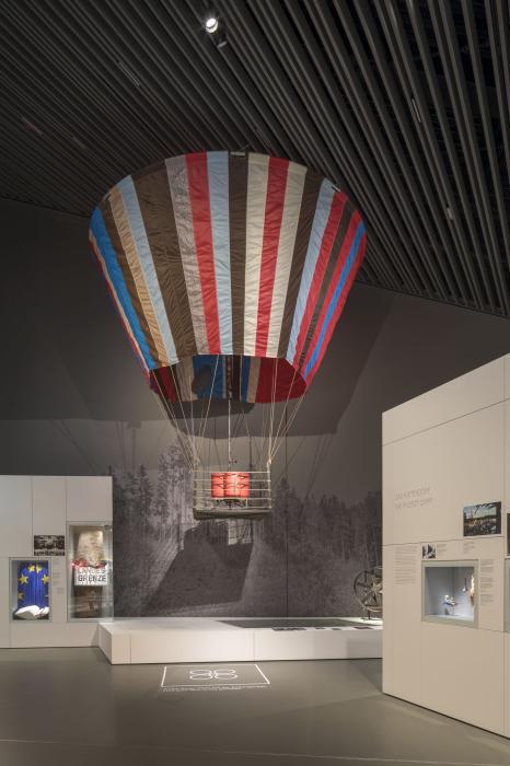 Er fliegt! Zum einjährigen Bestehen der Dauerausstellung im Haus der Bayerischen Geschichte in Regensburg kann der berühmte Fluchtballon aufsteigen. 1979 waren zwei Familien aus der DDR über die innerdeutsche Grenze mit einem Heißluftballon geflohen und in der Nähe von Naila in Oberfranken gelandet. Gondel und Ballon sind im Museum zu sehen, die Ballonhülle aus konservatorischen Gründen in einer Vitrine. Michael „Bully“ Herbig, der die Fluchtgeschichte verfilmt hat, hat nun den Ballon-Nachbau zur Verfügung gestellt und damit die Ausstellung um eine meterlange Attraktion bereichert.