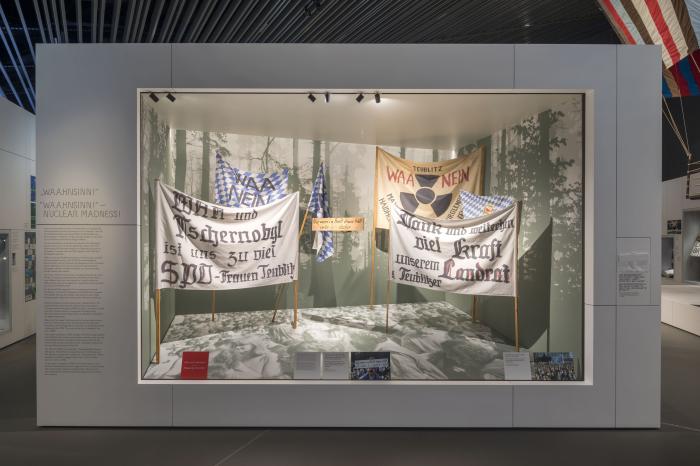 Zum einjährigen Bestehen hat das Haus der Bayerischen Geschichte seine Dauerausstellung verändert. Neu inszeniert zeigt sich die Bühne in der Generation 8, die die Proteste gegen die atomare Wiederaufbereitungsanlage in Wackersdorf thematisiert.