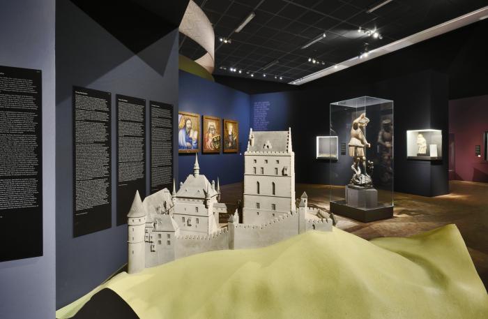 Gestaltungseinblick mit Modell der Burg Karlstein