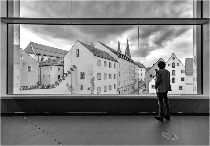 dann nicht realisierte vierspurige Donaubrücke. Das so entstandene, aus der ursprünglichen Baustruktur herausgebrochene Gelände wurde bis zur Errichtung des Museums als öffentlicher Parkplatz genutzt.Verzahnt mit der Stadt schließt der Museumsneubau nun eine bisher offene, städtebauliche Lücke in ihrer Nordansicht, wie ein Blick von der Alten Brücke verdeutlicht. Historisch betrachtet bildet der Bauplatz des Museums nun die Schnittstelle zwischen dem offenen Landschaftsraum der Donau und der mittelalterlichen Stadt Regensburg.