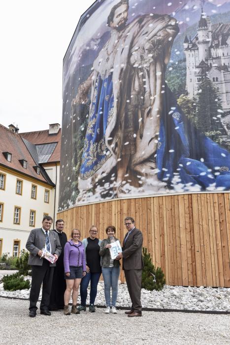 Die Bayerische Landesausstellung 2018 „Wald, Gebirg und Königstraum – Mythos Bayern“ erfreut sich großer Beliebtheit. So konnte nach gut einem Drittel der Laufzeit am heutigen Montagvormittag Daniela Holzmann aus Eppishausen vom Direktor des Hauses der Bayerischen Geschichte Dr. Richard Loibl, dem Cellerar des Klosters Ettal Pater Johannes Bauer und vom Garmisch-Partenkirchner Landrat Anton Speer als 50.000ste Besucherin begrüßt werden. Die Gratulanten haben die Geschichtsreferendarin am Gymnasium in Weilheim, die mit ihren beiden Kolleginnen die Ausstellung besuchte, mit dem Katalog zur Landesausstellung, Eintrittskarten für das neue Museum in Regensburg und einem Waldhimbeerlikör überrascht.