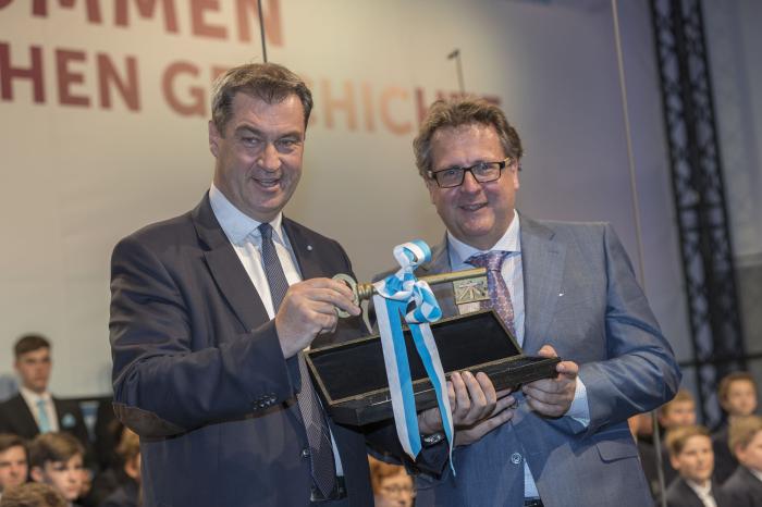 Regensburg, 4. Juni 2019. In nur vier Jahren Bauzeit wurde das Museum des Hauses der Bayerischen Geschichte errichtet, eines der modernsten Ausstellungshäuser in Europa. Am Dienstag, den 4. Juni 2019, fand durch den Bayerischen Ministerpräsidenten Dr. Markus Söder die feierliche Eröffnung statt. Unter den rund 1.600 Gästen waren neben Kunstminister Bernd Sibler zahlreiche Vertreterinnen und Vertreter aus Politik, Wissenschaft, Kultur, Kirche und Wirtschaft. Dazu kamen Bauleute, Handwerker, Leihgeber und Stifter, die alle zum Gelingen des neuen Museums beigetragen haben. Ihnen gelang es, gemeinsam ein echtes Bürgermuseum zu etablieren, in dem unter anderem rund 300 Exponate, die bayerische Familien für das Museum bereitgestellt haben, ihren Platz gefunden haben. Dies fand besondere Würdigung durch den Bayerischen Ministerpräsidenten Dr. Markus Söder: „Über 2000 Jahre Geschichte Bayerns in einem Gebäude: Das Museum der Bayerischen Geschichte in Regensburg ist eine Liebeserklärung an unsere Heimat. Die Menschen mit ihren Geschichten stehen dabei im Mittelpunkt. Viele persönliche Exponate von Bürgern für Bürger machen die Ausstellung über den Freistaat Bayern zu einem großen Gemeinschaftswerk. Moderne Architektur, historische Zeugnisse unserer Demokratiegeschichte und viel Multimedia verbinden Tradition und Zukunft. Sie schaffen einen einmaligen Erlebnisort über unsere bayerische Heimat und Identität."