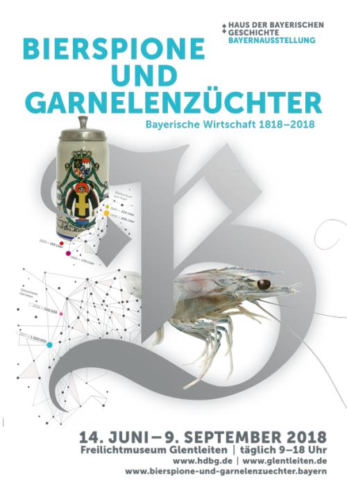 Plakatmotiv zur Bayernausstellung 2018 „Bierspione und Garnelenzüchter - Bayerische Wirtschaft 1818-2018“ Pressebild