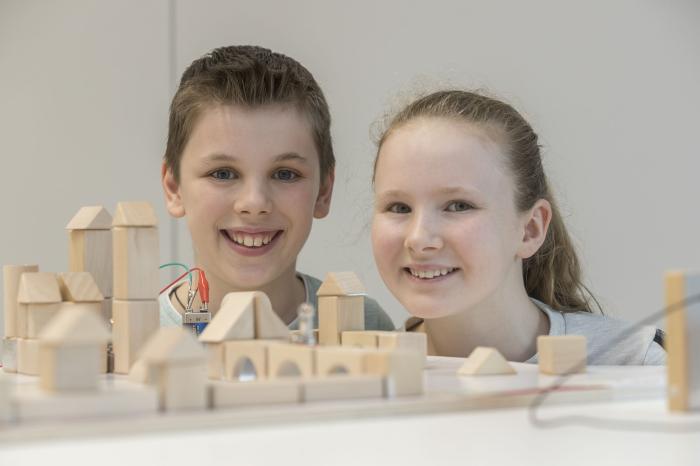 „Es werde Licht! Als die Technik in Bayern Einzug hielt …“ heißt das museumspädagogische Programm, das Innovationen in und aus Bayern untersucht. Die Teilnehmer werden dabei selbst zum Tüftler und bringen eine Stadt zum Leuchten, so auch die begeisterten Buben und Mädchen auf dem Foto.