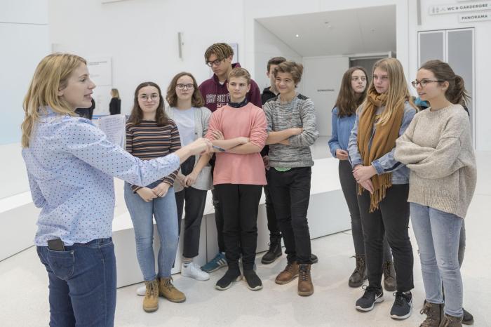 Die Testklasse des Albrecht-Altdorfer-Gymnasiums Regensburg bei der Technik-Einführung zusammen mit Dr. Christine Grieb vom Haus der Bayerischen Geschichte.