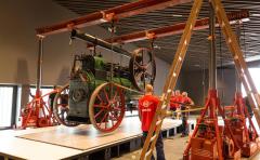 Die Lokomobile, gebaut im Jahr 1921, wurde in das Museum der Bayerischen Geschichte eingebracht. Kran und Schwertransporter waren nötig, damit der Fünftonner wohlbehalten im ersten Obergeschoss des Museums angeliefert werden konnte.