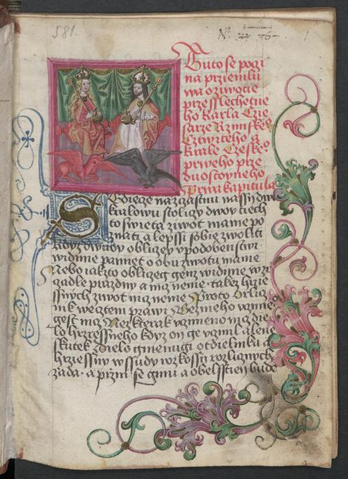 Die Abschrift der Autobiografie Karls IV. stellt eine tschechische Übersetzung der ältesten lateinischen Haupthandschrift dar, die um 1390 zusammengestellt wurde. Eine Reihe von Miniaturen illustriert die Lebensbeschreibung