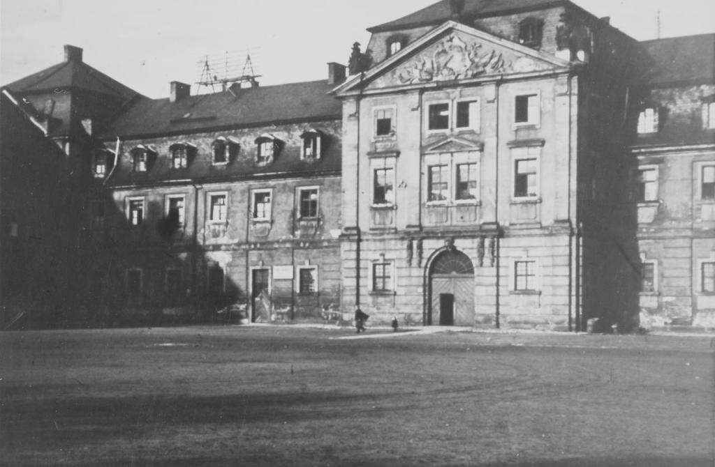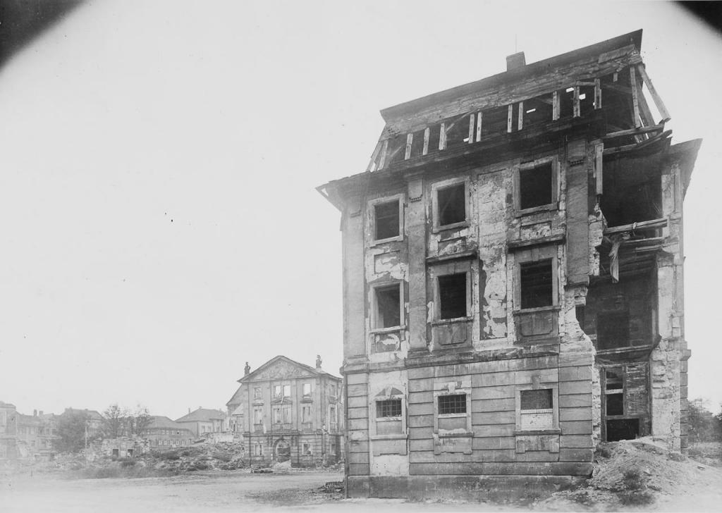 - 14. April 1945: zwei Flügel ausgebrannt, Mauerwerk teilweise eingestürzt