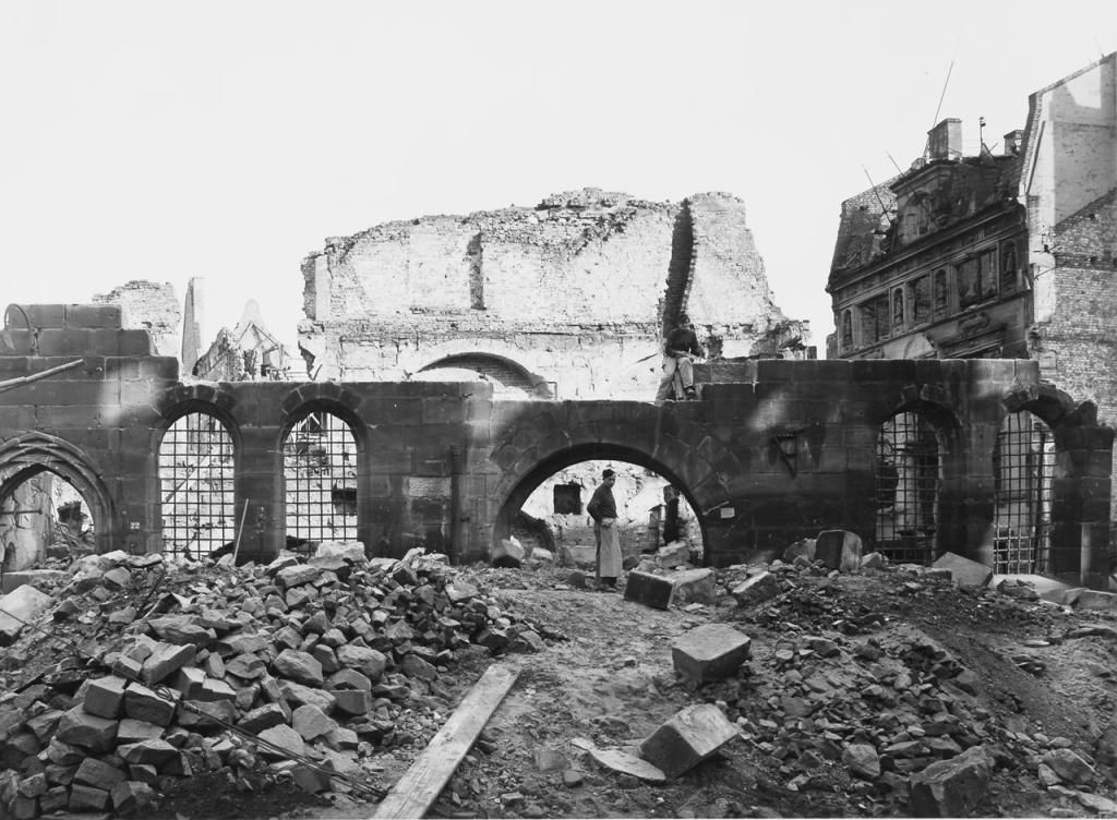 • dreigeschossiger Sandsteinbau mit feingegliedertem Giebel Sandsteinrelief von Adam Kraft (1497) an der Westfront