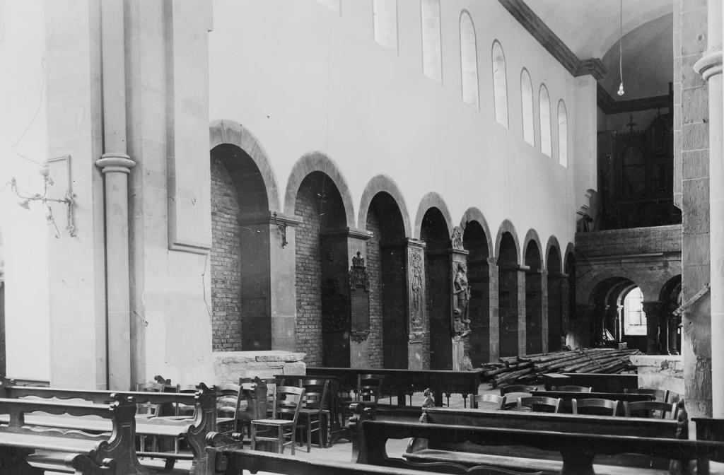 - 21. November 1944: westliches Seitenschiff teilweise, Deckengewölbe ganz eingestürzt