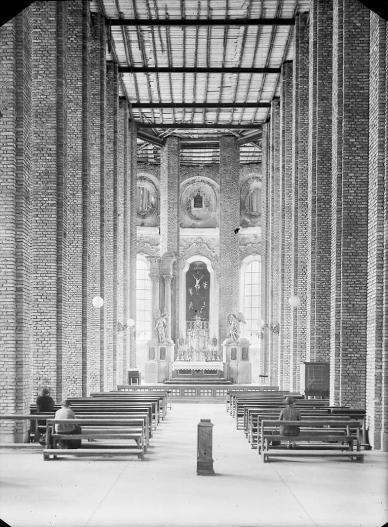 - Einsturz der Gewölbe und mehrerer Pfeiler: Verlust der Fresken, der Kanzel, der Orgel, des Josephaltars, des halben Hauptaltars und 80% des Gestühls