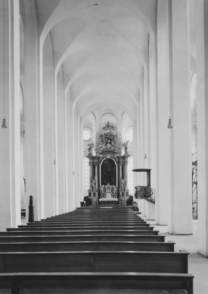• bis 1952: Wiederherstellung des Innenraums mit Gewölben ohne barocke Gliederung und Stuckaturen durch Erwin Schleich