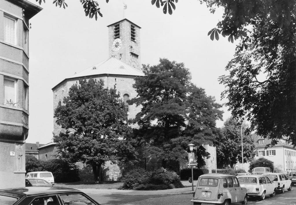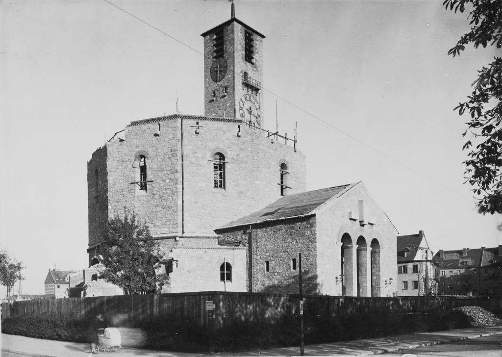 • 1930 - 1934: von German Bestelmeyer als zehneckiger Zentralbau mit freigestelltem Turm in Kalkbruchsteinmauerwerk errichtet