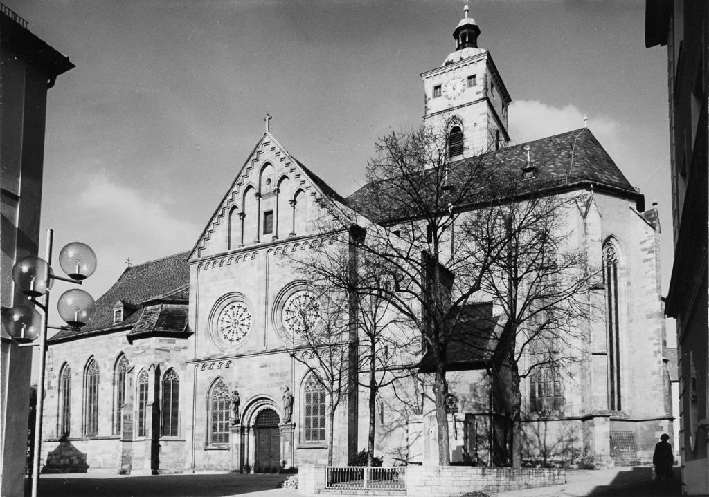• 13. Jh.: dreischiffiger basilikaler Typus mit zweischiffigem Querhaus, Chorturm, Westfassade mit Treppentürmen, Langhausobergaden fensterlos