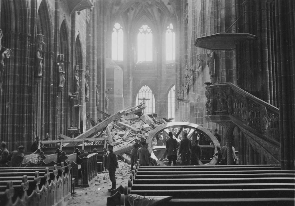 - Februar und März 1945: Abbruch der meisten Seitenschiffstrebebögen