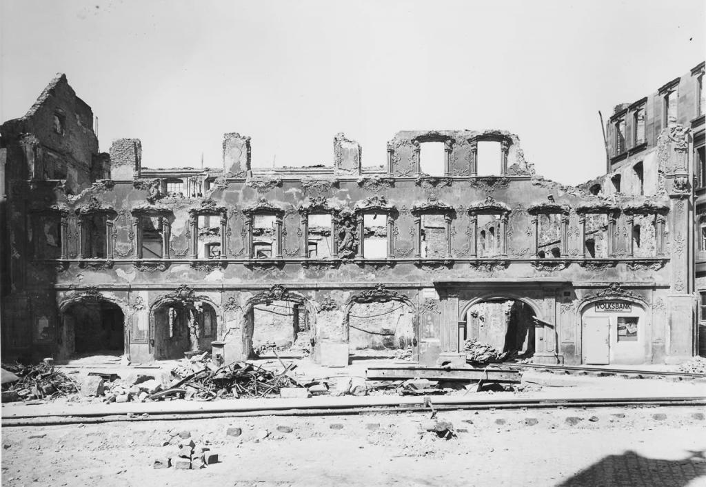- zweites Obergeschoss der Fassade zum Markt und die Zwerchgiebel zerstört