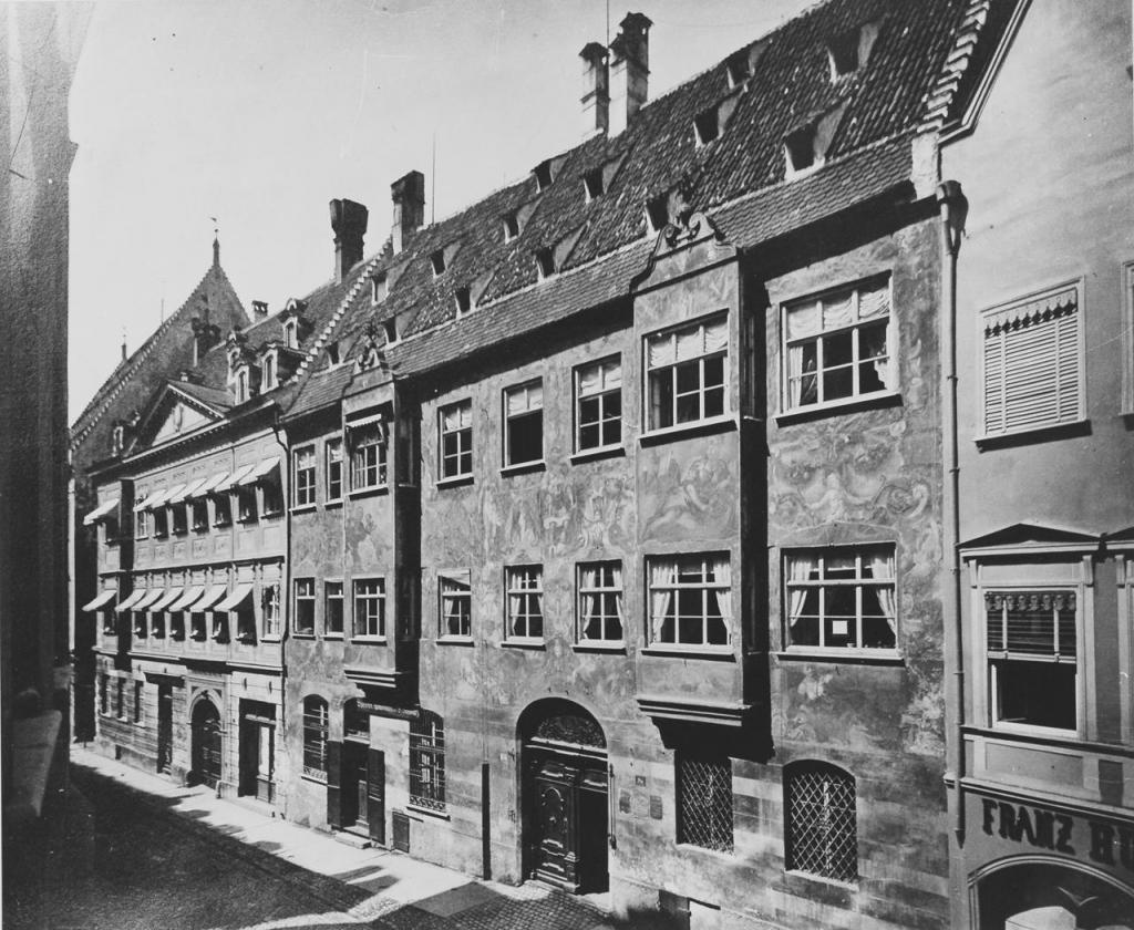 • dreistöckiges Traufseithaus mit zwei Erkern über zwei Geschosse und reicher, teilweise figürlicher Fassadenmalerei von 1560/1561