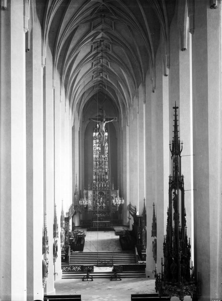 - Ausstattung: Chorgestühl bis auf die Bekrönungsfiguren und der größte Teil der Einrichtung zerstört