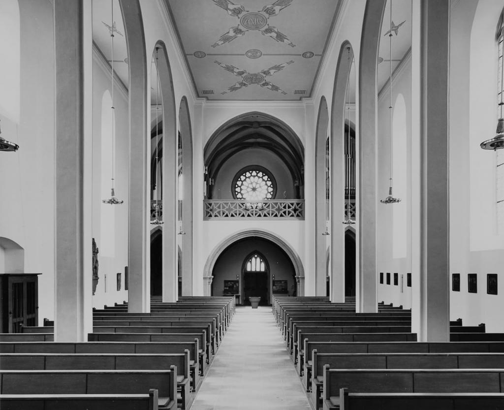 • Decke im Langhaus, barocke Kanzel, einige der Emporenkapitelle, Grabstein des Truchseß von Baldersheim zerstört